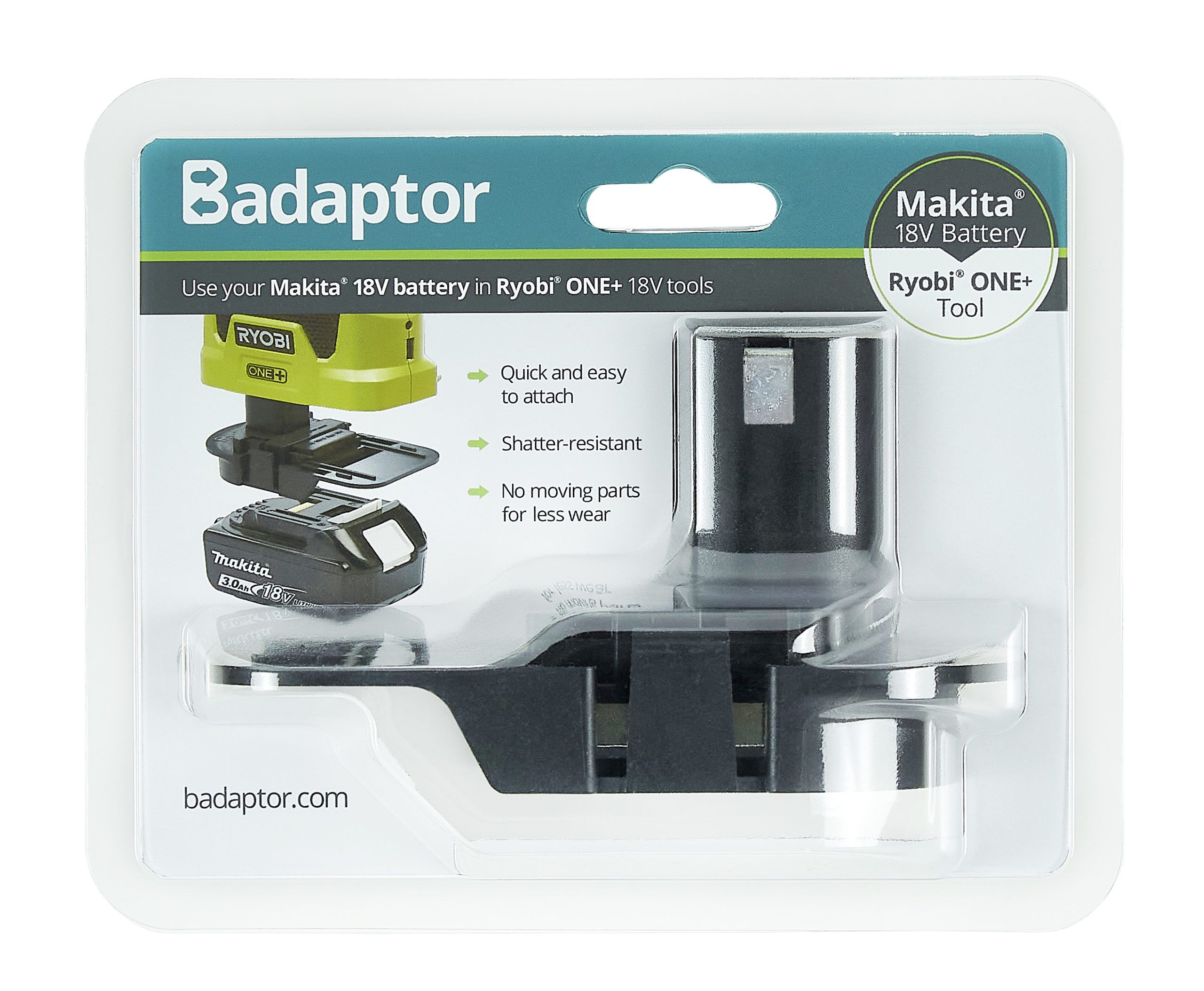 The Makita Badaptor allows customers to use their existing 18V Makita batteries with the extensive range of Ryobi One+ tools.